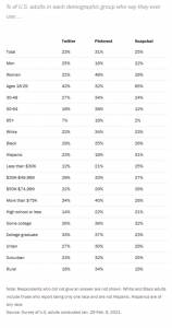 Pinterest is most popular among women, while Snapchat and Twitter are most popular among 18 to 29-year-olds.