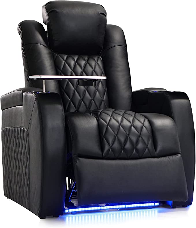 | Seatcraft Diamente Home Theater Recliner | Leather gel, adjustable headrest and lumbar support, USB charging port, 90° to 160° reclining, power recline | $800-$1200 |