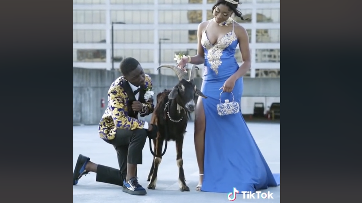 Tailgating outside of concerts and drinking water are time-honored rituals, but here’s something new kids are doing: Taking prom photos with goats. The trend is a play on the acronym G.O.A.T.; high schoolers are renting livestock along with their limos and tuxedos so they can pose next to the animal to say, “We are the greatest of all time.” It seems to be mainly a thing around Atlanta—livestock rental company Get Your Goats Rental started the trend by catering to prom goers with deliveries of Insta and TikTok-ready goats, and it’s catching on. They say they’ve rented out over 100 goats this year alone, all so prom couples can post videos like this one and this one. These videos have a kind of absurdist power that I absolutely love—formalwear and domesticated animals make for a surprisingly memorable combination.