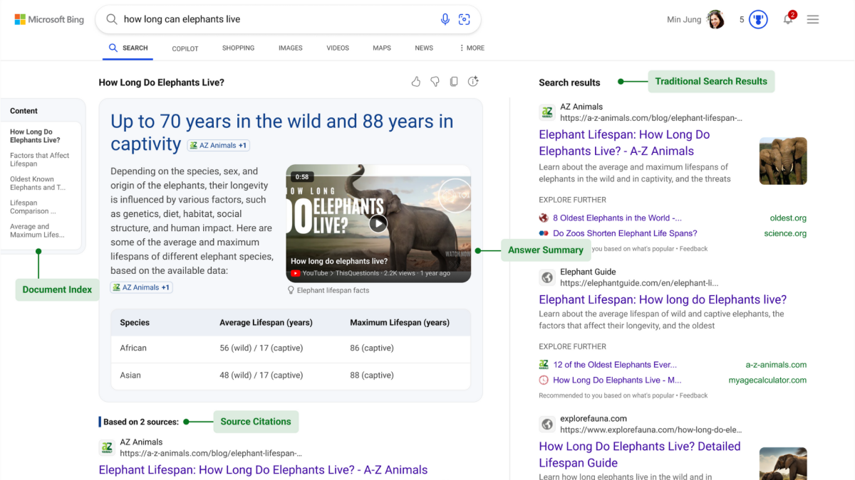While it’s not quite ready yet, Microsoft’s Bing Generative Search is about to totally change what the Bing homepage looks like. While Google’s AI Overviews are largely limited to a small box at the top of the page, Bing Generative Search will offer an information box, bullet points, related content, and videos that take up the entire left half of your screen. The “Traditional Search Results,” as Microsoft calls them, will still show up, but in a small sidebar to the right.